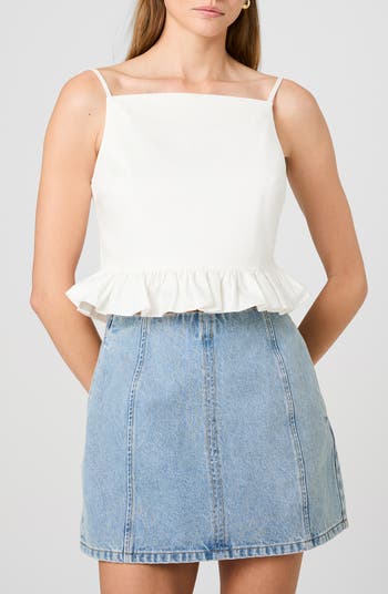 A fluttering frill punctuates this cropped square-neck cami kissed with stretch for a comfortable fit.