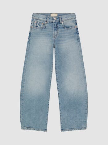 Lilia is a relaxed barrel leg silhouette for a trendy Y2K look. Beachwave Drawcord is a light indigo wash with an authentic look. It features an ecru cotton drawcord, silver and copper hardware, khaki stitching, a clean hem and an ecru back patch.