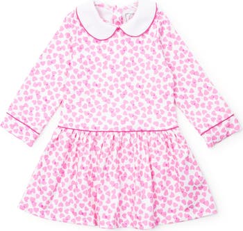 Long sleeve pima cotton dress with peter pan collar and contrast piping. Drop waist ruffle skirt. Made from 100% Peruvian Cotton.