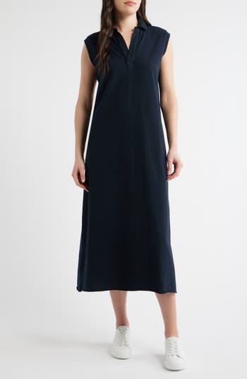 Slight sleeves frame this polo maxi cut in an A-line silhouette and made from pure cotton.