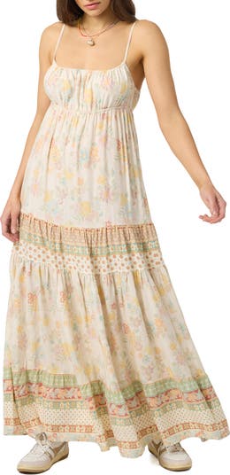 Tap into your free-spirited side with this flouncy maxi dress rendered in a soft-focus floral print that's punctuated with contrast.