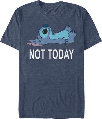 - Own the moment with this stylish new everyday Men's T-Shirt that is perfect for every occasion! Featuring the fan favorite Stitch laying on his back while looking up into the sky and the text: "Not Today," written below him in big bold letters.