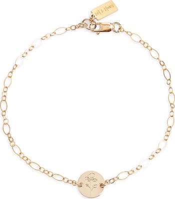Celebrate a loved one's (or your own) special day with this handmade oval-chain bracelet featuring a 14-karat gold-filled coin charm engraved with a birth-month flower.