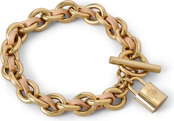Inspired by the woven leather and chain strap of our iconic Lily evening bag, this statement bracelet also showcases our iconic Postman's Lock hardware.