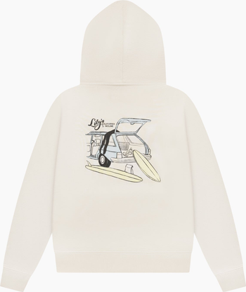 Our relaxed, oversized hoodie is made from midweight soft cotton terry and features our Lily's Malibu illustration on the back.