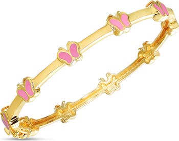 Your kiddo will adore the hand-painted butterflies stationed along this golden bangle.