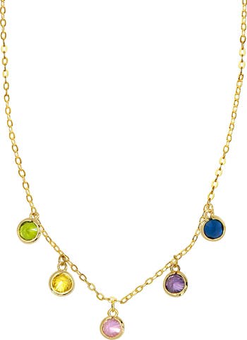 Radiant cubic zirconia charms in rainbow hues lend dazzle and delight to this chain necklace made especially for kids.