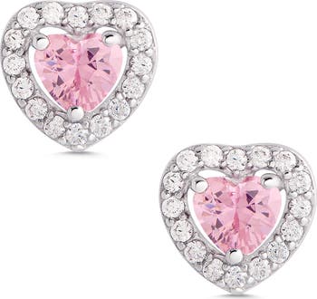 Blushing hearts are surrounded by a halo of sparkles on these stunning cubic zirconia stud earrings made specially for kiddos.