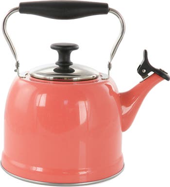 Heat up some water to enjoy a hot beverage with this Martha Stewart Everyday Lily Pond 2.2 Quart Stainless Steel Tea Kettle. Durable stainless steel construction means this kettle will last for years and serve you many warm drinks. A fold down handle with stay cool grip means this kettle is easy to fill and clean. Simply listen for the soft whistling noise to know when your water is boiling and rest assure the induction base is compatible with all cooktop types. Enjoy your favorite hot beverage year round with this gorgeous kettle! Item Dimensions: 10.25" x 10.00" x 7.50" Item Weight: 1.70lbs