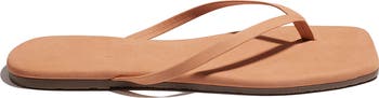 Supple Brazilian suede gives a luxe feel to this square-toe flip-flop cushioned by a lightweight footbed and flexible sole.