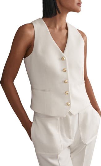 Golden hardware amps up the polish of this sophisticated vest made from a woolly stretch-kissed blend.