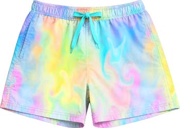 Make a splash with these vibrant board shorts designed for active boys! Featuring an eye-catching candy-colored marble print, they're made from eco-friendly recycled polyester that's ready for any adventure. The contrasting drawstring waistband keeps them secure during water play, while the soft mesh liner provides all-day comfort. Perfect for beach days, pool parties, or backyard fun.