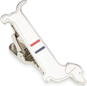Thom Browne’s beloved wire-haired dachshund, Hector, stars in this playful tie clip made from smooth enamel backed with polished sterling silver. Tricolor stripes add another signature touch.