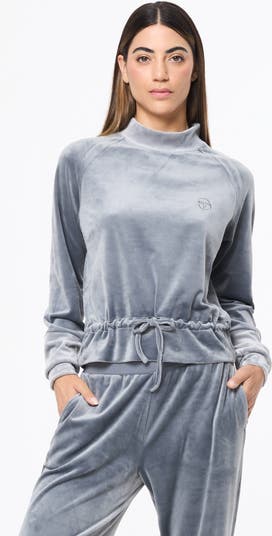 Elevated everyday easythe Lina Velour Top is a modern staple that blends luxe texture with a sporty edge. Designed in plush stretch velour with bold color-blocking, this long-sleeve top flatters with raglan sleeves and a sleek mock neck collar. An adjustable drawcord cinch at the waist lets you customize the fitwear it relaxed for laid-back ease or tightened for a cropped, curve-enhancing shape.Pair with the Lina Velour Track Pant for the full fit. (Sold separately)