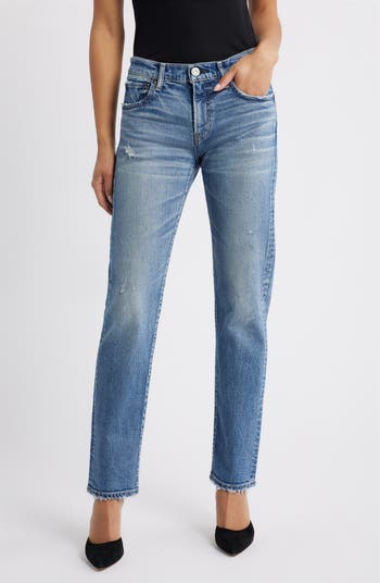 Cut from premium Japanese denim, these faded nonstretch jeans with a mid-rise waist feature a slim, straight-leg fit that looks great any day of the week.