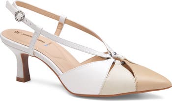 A laser-etched sole adds extra security to every step you take in this gracefully pointed leather slingback pump that a features a cushiony TRUFOAM® footbed for all-day comfort under foot.