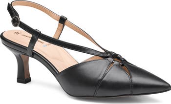 A laser-etched sole adds extra security to every step you take in this gracefully pointed leather slingback pump that a features a cushiony TRUFOAM® footbed for all-day comfort under foot.
