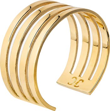 This 14-karat gold-plated cuff cut with four ribbon-like lines creates a simple yet modern silhouette that works with any look.