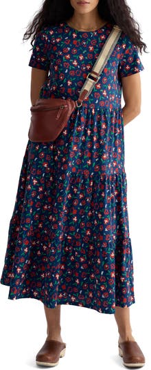 A vintage-inspired floral pattern blossoms on a tiered, organic-cotton-jersey dress that's the perfect way to elevate your everyday style.