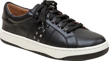 Gleaming pyramid studs create a bold aesthetic on a leather sneaker grounded by a cushioned footbed and slip-resistant rubber cupsole.