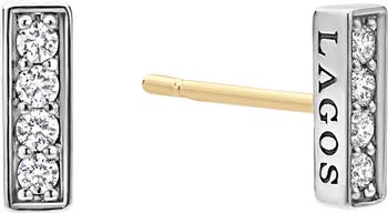Linear sterling silver stud earrings serve subtle sparkle with channels of diamonds straight down the middle.