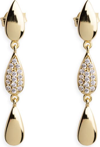 Sparkling pavé crystals catch the light from every angle on these radiate linear drop earrings plated in 18-karat gold.