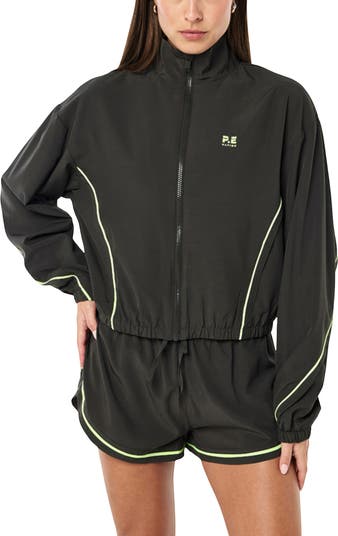 Move freely from studio to street in a breathable jacket made with four-way stretch and a fabrication that resists raindrops to flex with the forecast.