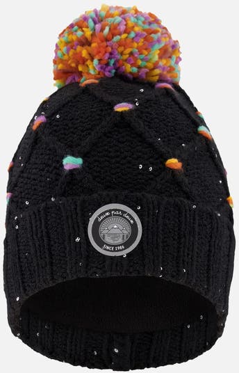 Lined with polar fleece for added warmth, this knit cap features a cozy stretch fit with a cuffed hem, multicolor stitches for pops of color, and a multicolor pompom on top. A logo patch on the front adds signature style.