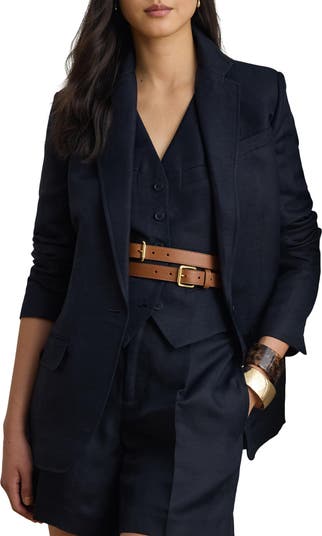 Put a tailored finishing layer on your warm-weather ensembles with this classic one-button blazer cut from a fresh, breathable linen blend.