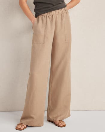 Relaxed yet refined, these linen-blend dobby pants offer breezy comfort with a wide leg cut, front patch pockets and a tailored feel. Designed with a flattering, fluid drape, style them with the coordinating top for a complete matching set.