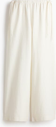 Loose-fit trousers in an airy weave made from a linen blend. Featuring a high, elasticated waist with a double-ended drawstring. Discreet side pockets, a welt back pocket and wide legs.
