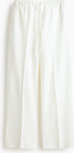 Loose-fit trousers in an airy weave made from a linen, viscose and cotton blend. Featuring an elasticated, drawstring waist, discreet side pockets and patch back pockets. Wide legs with creases down the front and back.