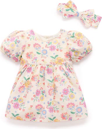 Get ready for summer with our Floral Dress Set, designed in a bright and colourful all over floral print. Featuring a dress with puffed sleeves and sweet gathered skirt, and matching bow headband. Made from the softest cotton linen blend, making this outfit lightweight and breathable.