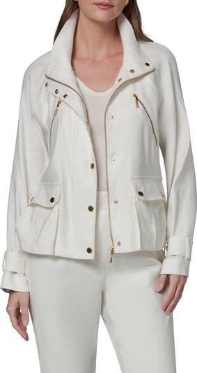 Brassy hardware and zipped details bring subtle swagger to a soft yet sturdy jacket made from linen-forward twill.