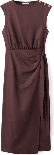 A side tie punctuates the hip of this elegant sleeveless dress made from an airy and breathable linen blend.
