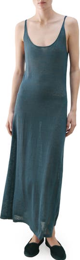 A lightweight linen blend lends airy dimension to this slip-on midi dress framed by a deeply scooped neck and back.