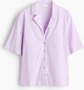 Short-sleeved shirt in an airy linen and viscose weave. Resort collar with a deep opening, buttons down the front and a straight-cut hem with a slit at each side.