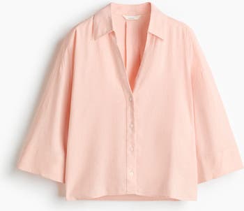 Shirt in a linen and viscose blend featuring an open collar and buttons down the front. Inverted box pleat at the back, dropped shoulders and wide 3/4-length sleeves. Straight-cut hem at the front and gently rounded hem at the back.