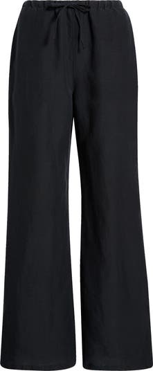 Straight legs enhance the relaxed fit of these comfy tie-waist pants cut from a lightweight linen blend.