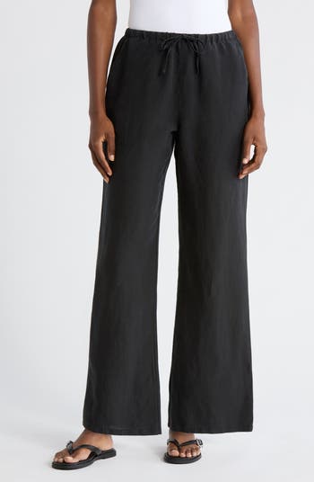 Straight legs enhance the relaxed fit of these comfy tie-waist pants cut from a lightweight linen blend.