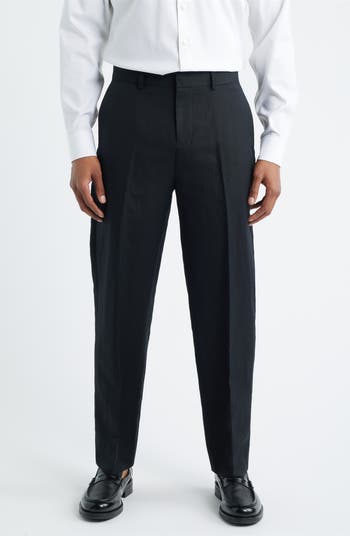 Crisp creases run clean down these lightweight linen-blend pants, giving the breezy fabric a sharper point of view. Tailored in a with tapered-leg silhouette, they keep you looking polished morning meetings to late dinner plans.
