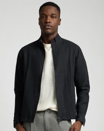 Crafted from linen, this bomber jacket offers a lightweight take on a classic silhouette with breathable comfort.