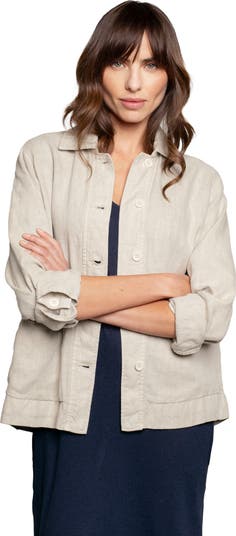 This boxy jacket features a classic collared neckline and practical patch pockets. Its relaxed fit and lightweight linen make it a versatile layering piece, perfect for transitioning between seasons.
