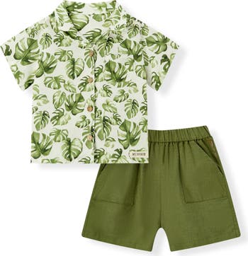 Keep your little one looking sharp and feeling cool with our Linen Button-Up Shirt and Shorts Set in the Island Leaf print. This classic shirt features a playful pattern, while the coordinating solid-color shorts offer a clean and classic balance - the perfect ensemble for a perfect day. Our blend of 60% Linen and 40% Cotton combines the durable, absorbent nature of linen and the softness of cotton to create a breathable, lightweight fabric that will keep your little one comfortable all summer.