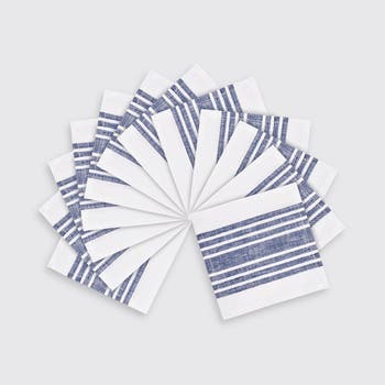 Inspired by vintage grain sacks used on farms in France, our Farmhouse cocktail napkins add a rustic charm to any tablesetting. Woven of 100% pure linen, these center stripe dinner napkins are made for casual dining and weekend get-together's. Complete the look by pairing with the tablerunner and placemats. from our Farmhouse Collection.