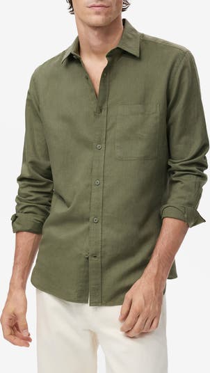 A relaxed fit lends a more casual vibe to this breathable button-up shirt made of an airy blend of linen and cotton.