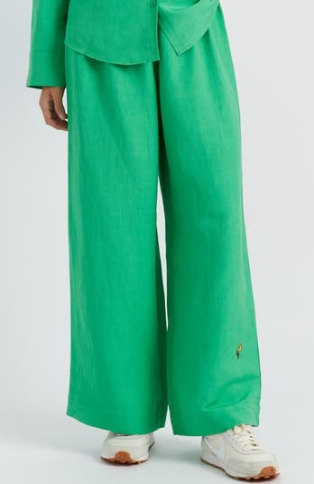 Effortlessly chic and endlessly comfortable, these wide-leg trousers are crafted from a breathable cotton-linen blend for a soft, airy feel. Designed with a relaxed fit and an elastic waistband, they offer ease of movement while maintaining a polished look. The "Peanuts Racquet Club" embroidery adds a playful yet refined touch, making them a standout piece. Pair them with the matching shirt for a coordinated ensemble or style them with a simple blouse for an elevated casual look.