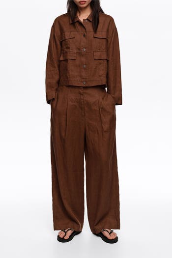 Ankle-length straight-cut trousers made from 100% linen. Designed with a mid-rise, concealed hook-and-eye and zip fastening, side seam pockets, back welt pockets, and front darts