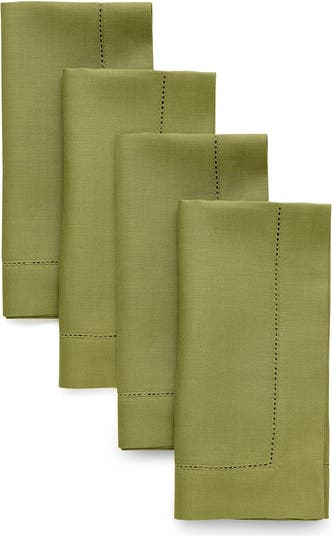 Solino Home Linen Dinner Napkins - Classic Hemstitch, Main, color, Avocado
