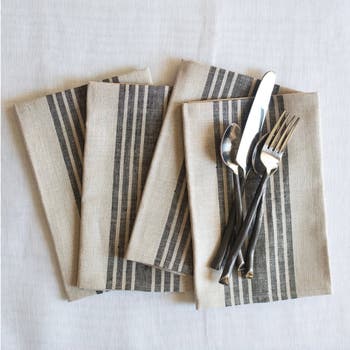 Inspired by vintage grain sacks used on farms in France, our Farmhouse dinner napkins add a rustic charm to any tablesetting. Woven of 100% pure linen, these center stripe dinner napkins are made for casual dining and weekend get-together's. Complete the look by pairing with the tablerunner and placemats. from our Farmhouse Collection.